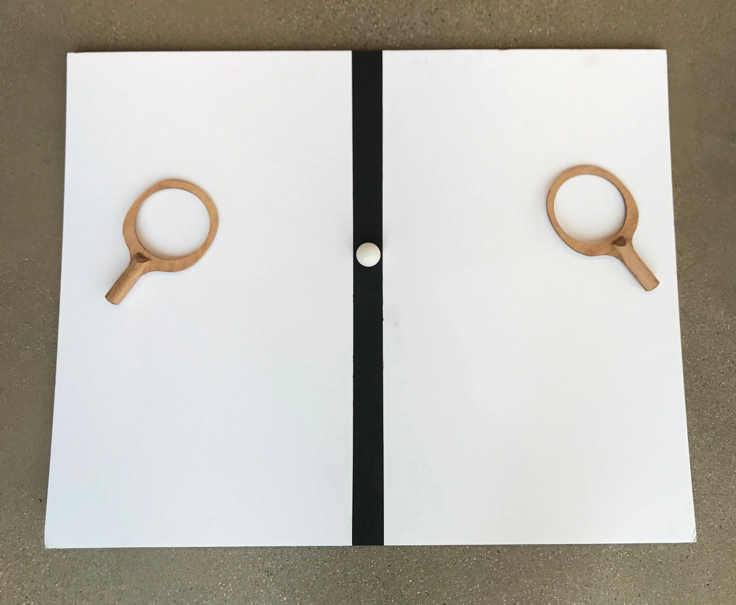 No Play, 2018 [plywood, wooden dowels, foam core, acrylic paint, ping pong ball]